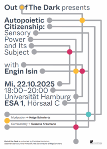 (1) „Autopoietic Citizenship – Lecture with Engin Isin„ by Engin Isin (Lecture Series „Out of the Dark“ / Commentary: Susanne Krasmann /Moderation: Helge Schwiertz)